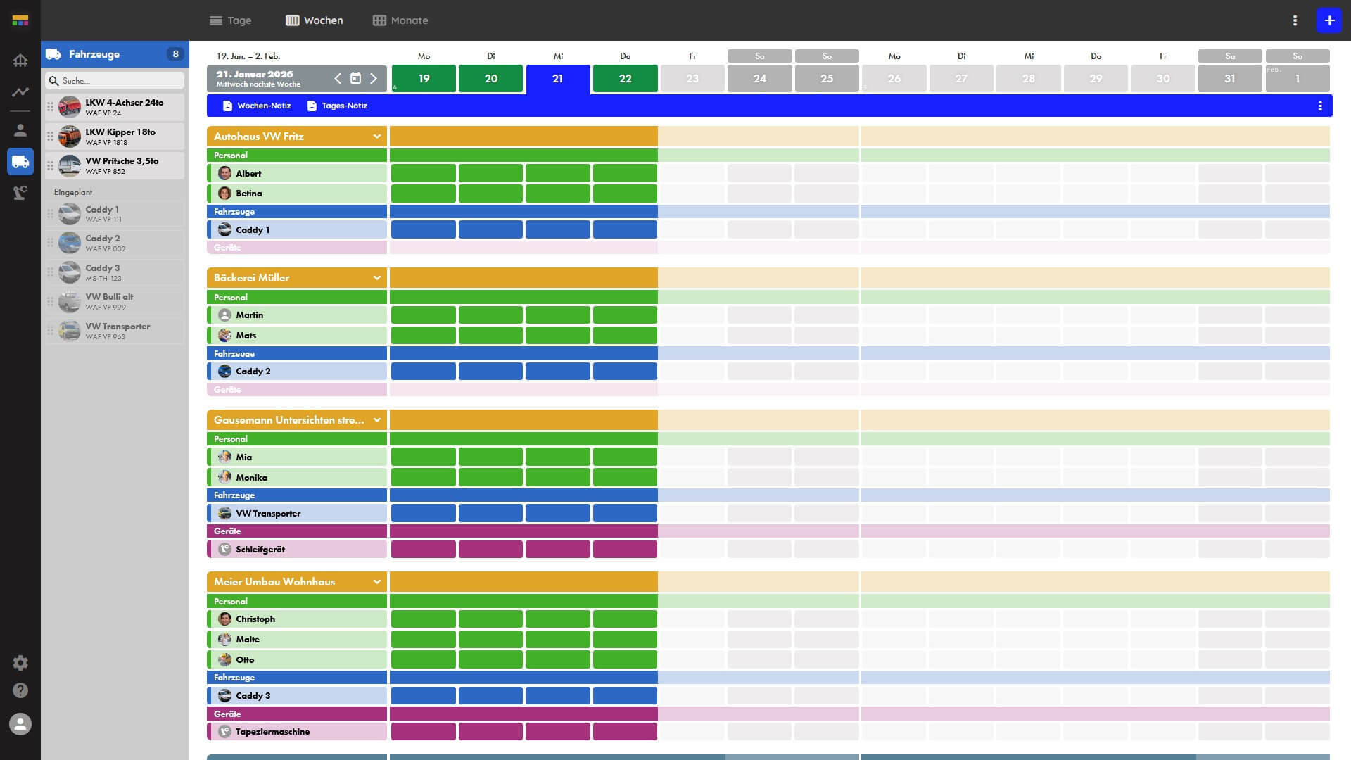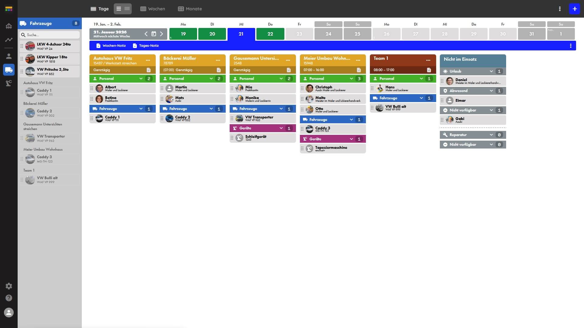 Flexible Planung von Personal, Fahrzeugen und Geräten