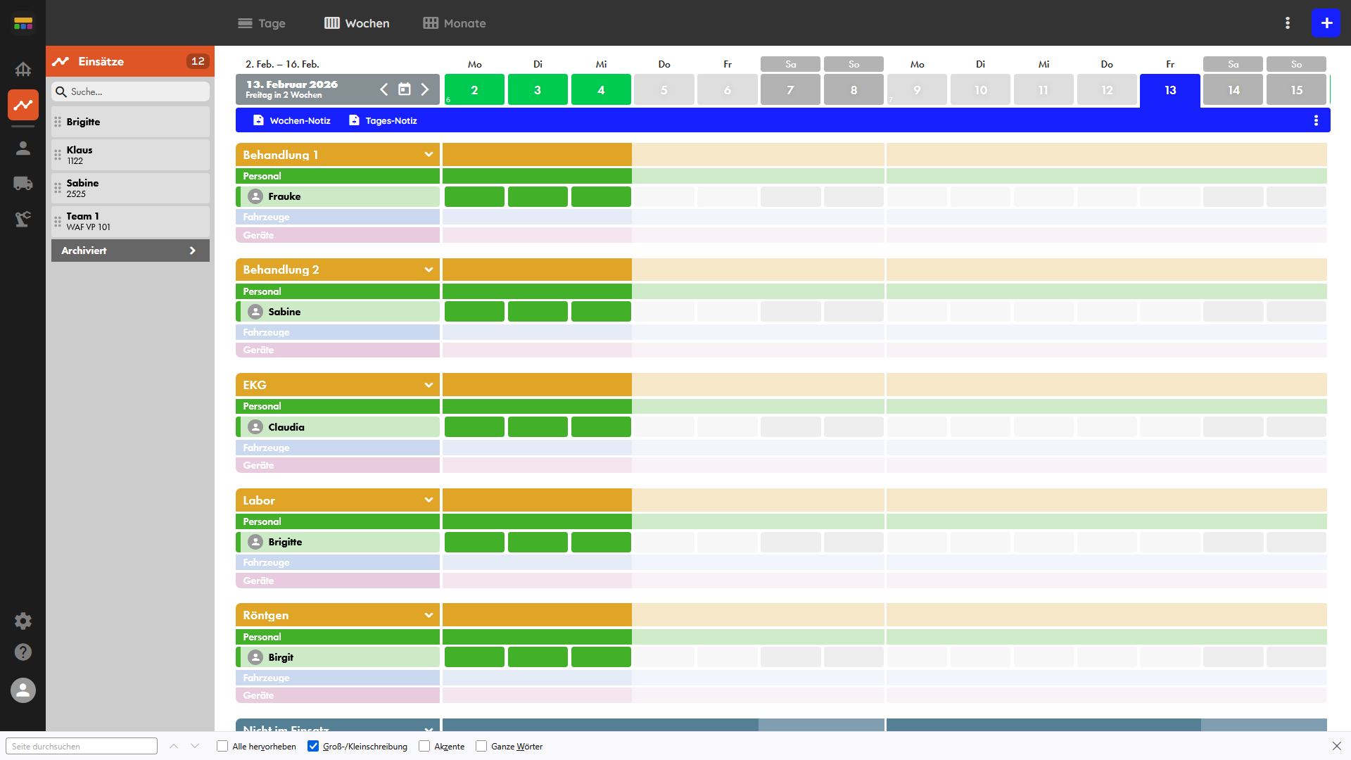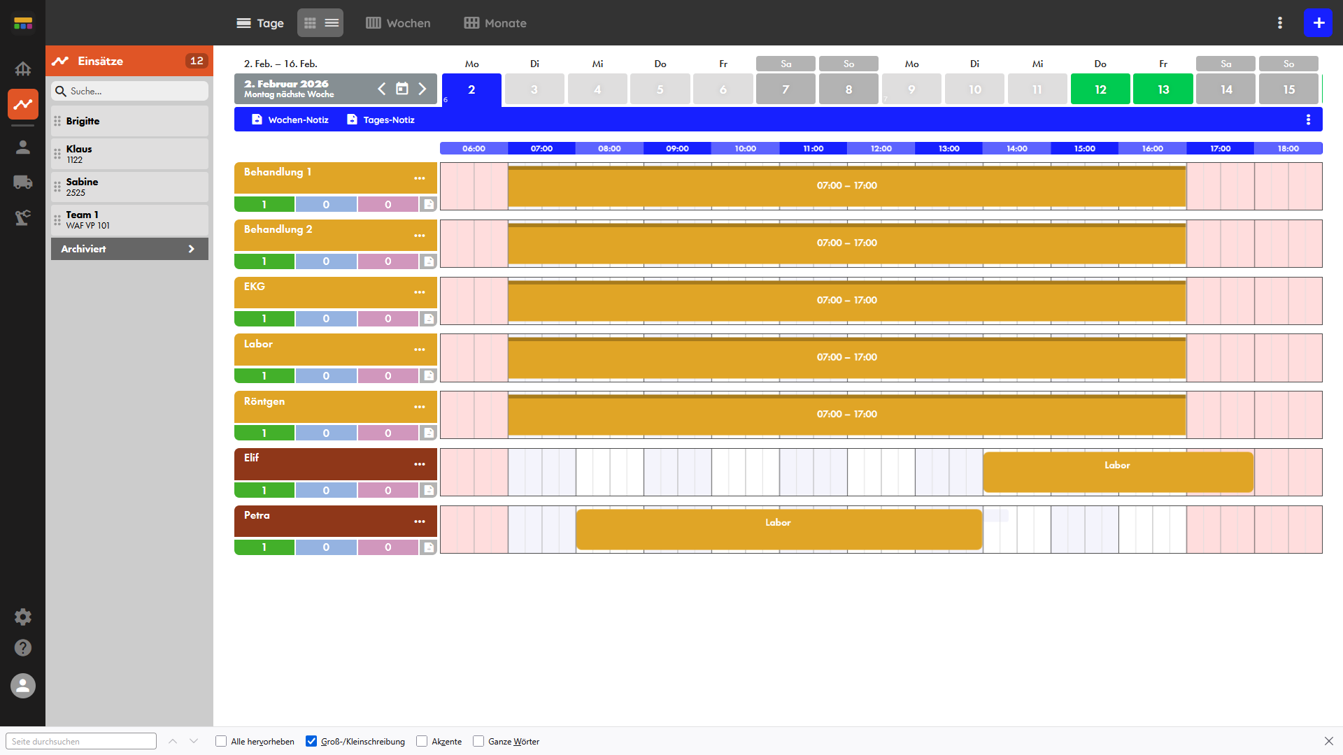Einsatzplanung nach Einsatzort, Mitarbeiter oder Team
