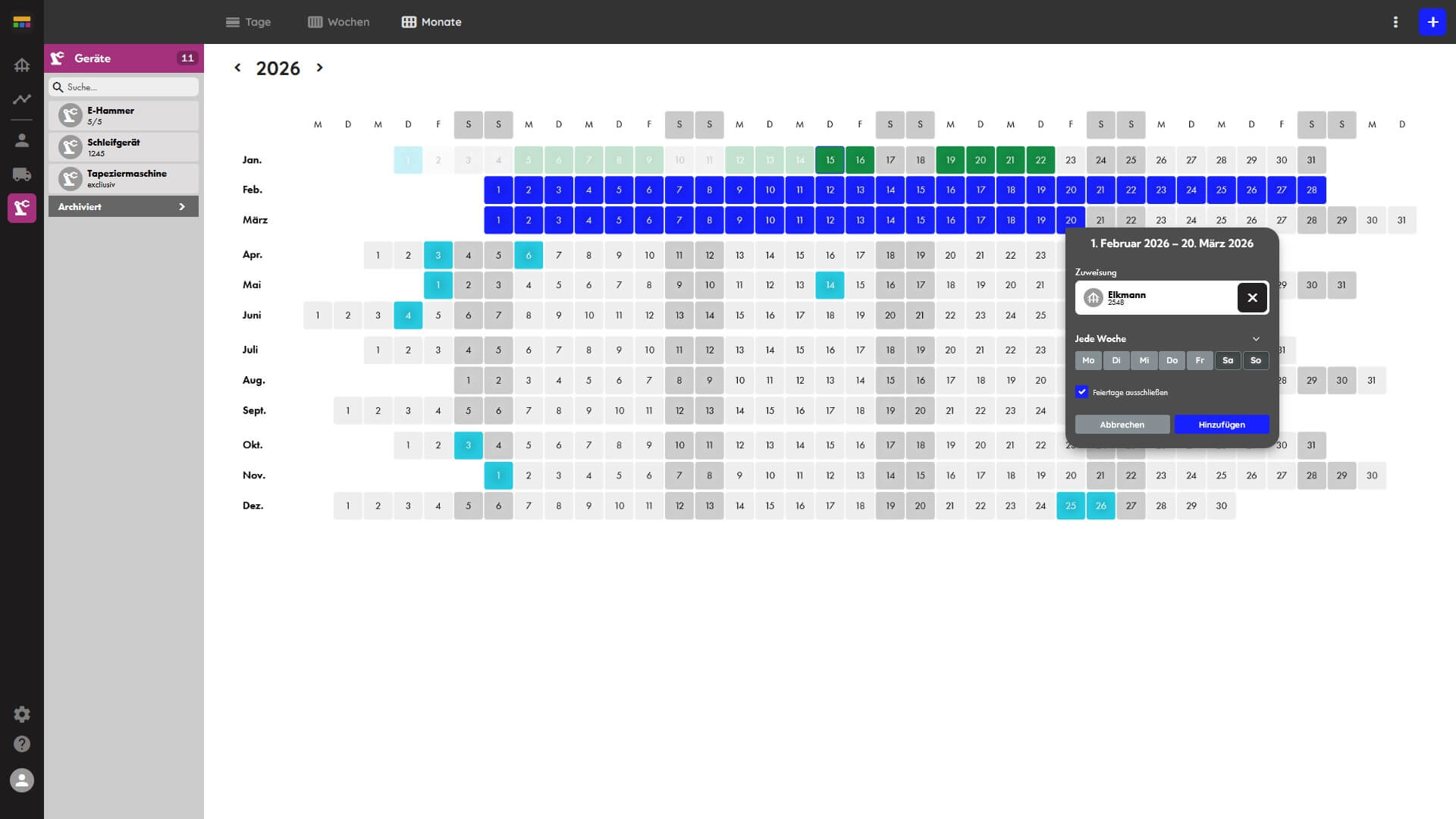 Plane Mitarbeiter, Fahrzeuge und Geräte, je nach Bedarf, zentral – visuell, flexibel und für alle in Echtzeit sichtbar.